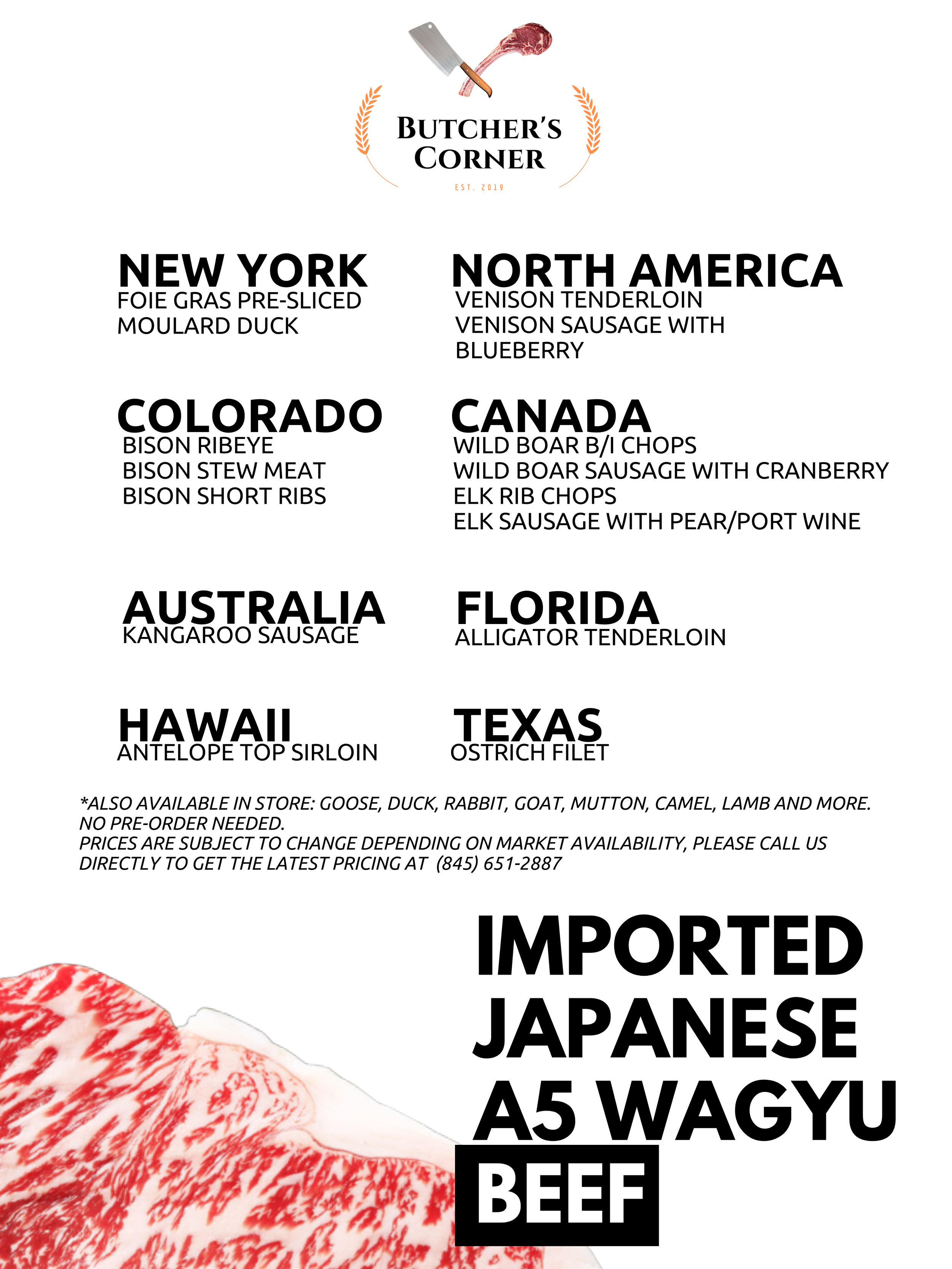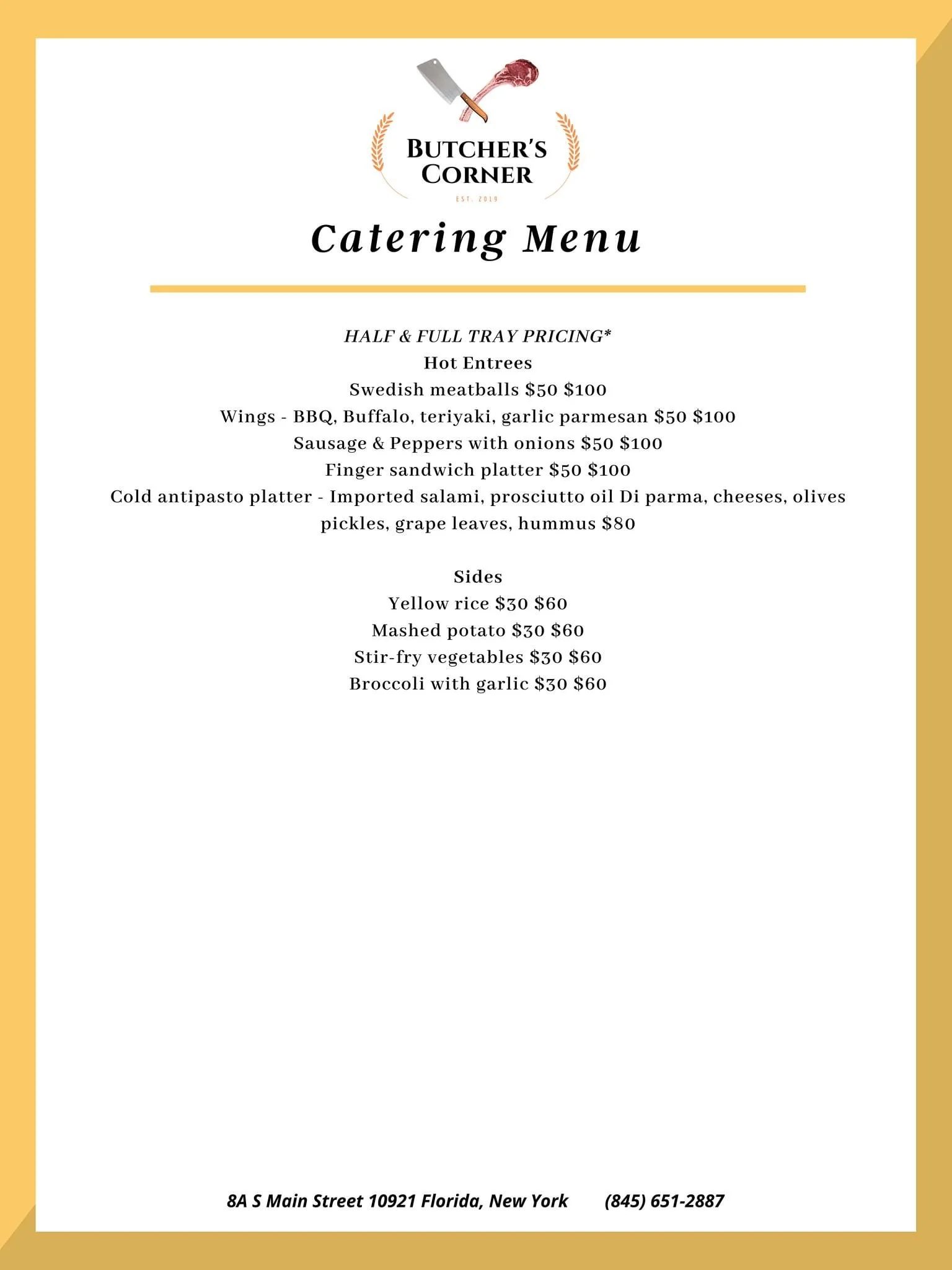 All prices are subject to change without notice and are not guaranteed, except that prices for an order that have been accepted by Butcher’s Corner.